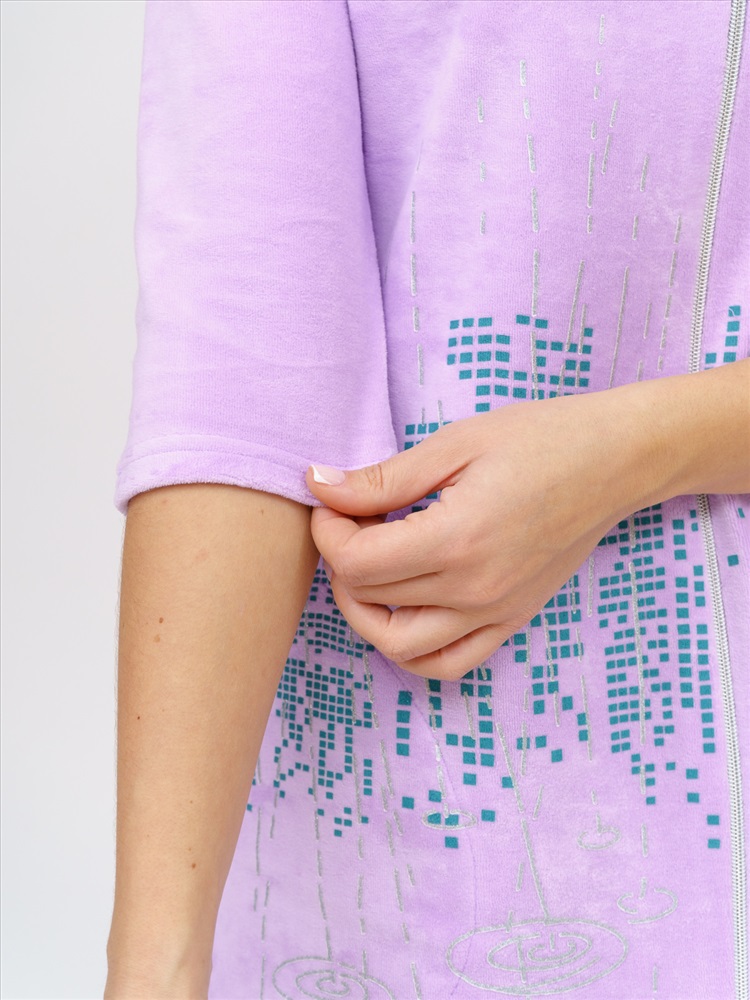 Состав: 80%хлопок, 20%п/э Материал: велюр Халат женский создан из велюра высокого качества - отличный выбор для тех, кто больше всего ценит нежность материала и приятную на ощупь текстуру. Благодаря идеальным лекалам подходит под любой тип фигуры от 44 до 54 размера. Нарядный и удобный домашний халат средней длинны на молнии, круглый неглубокий вырез, рукава длиной 3/4. Украшением этой модели стал эксклюзивный принт. Этот женственный и нежный наряд подарит ощущение роскоши и уюта своей обладательнице. В этом халате приятно не только окунуться в мир спокойствия и домашнего уюта, он идеально подойдет для встречи гостей. Материал: велюр Состав: 80% хлопок, 20% полиэстер Длина изделия по спинке: 84-89 см Тип застежки: молния Карманы: 2 потайных Пояс: нет Спинка изделия: однотонная Чтобы изделие из трикотажа долгое время не теряли своей красоты и яркости, о них нужно заботиться: ~ Хранить в горизонтальном положении в сухом помещении (не более 65%); ~ Перед стиркой изделие вывернуть на изнанку. При наличии молний, их нужно застегнуть и также вывернуть; ~ Стирать в ручную или использовать режим деликатной стирки, при температуре 30-40 С; ~ Деликатно отжать, избегая интенсивного выкручивания. ~ Сушить в горизонтальном положении. ~ Если есть необходимость погладить, то сделать это с изнаночной стороны при невысокой температуре. Придерживаясь этих несложных рекомендаций, Вы поможете изделию из трикотажа не потерять форму и цвет, чтобы оно радовало Вас не один сезон. Комментарии к товару