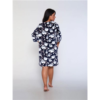 Состав: полиэстер 100% Цвет: синий Комплектация: халат Женский халат из трикотажного полотна - велюр, прямой силуэтной формы, с О-образной горловиной. Полочка с прорезными карманами, с застёжкой на молнии. Рукав втачной базового покроя длиной 3/4, низ рукава обработан манжетой. Халат отлично подойдет на прохладную погоду. Комментарии к товару