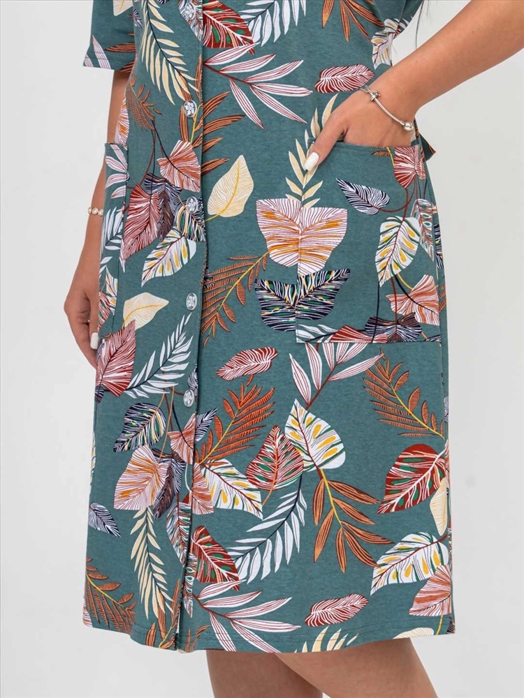 Состав: хлопок 100% Цвет: зеленый Декоративные элементы: пуговицы Халат женский из трикотажа, длиной до уровня колена. Рукав - втачной, длиной 3/4. Вырез горловины V-образный. Застежка на пуговицы. Комментарии к товару