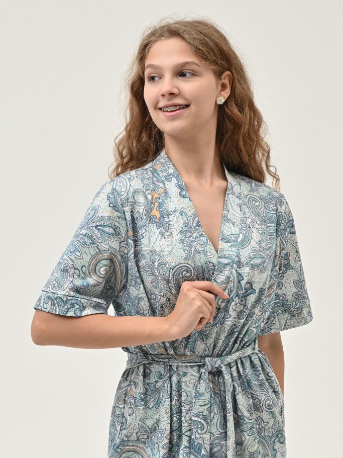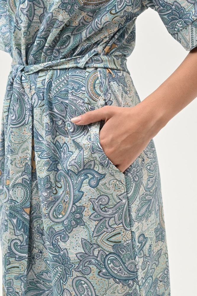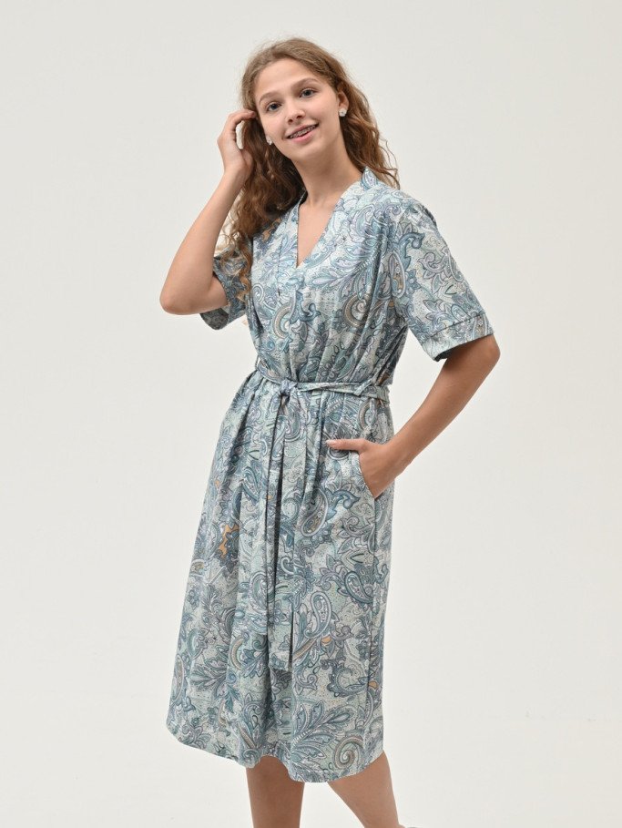 Состав: 100% хб Рост модели на фото, см: 170 Застежка: на запах Силуэт: прямой Тип рукава: втачной Карманы: в боковом шве Артикул: 6824-21
