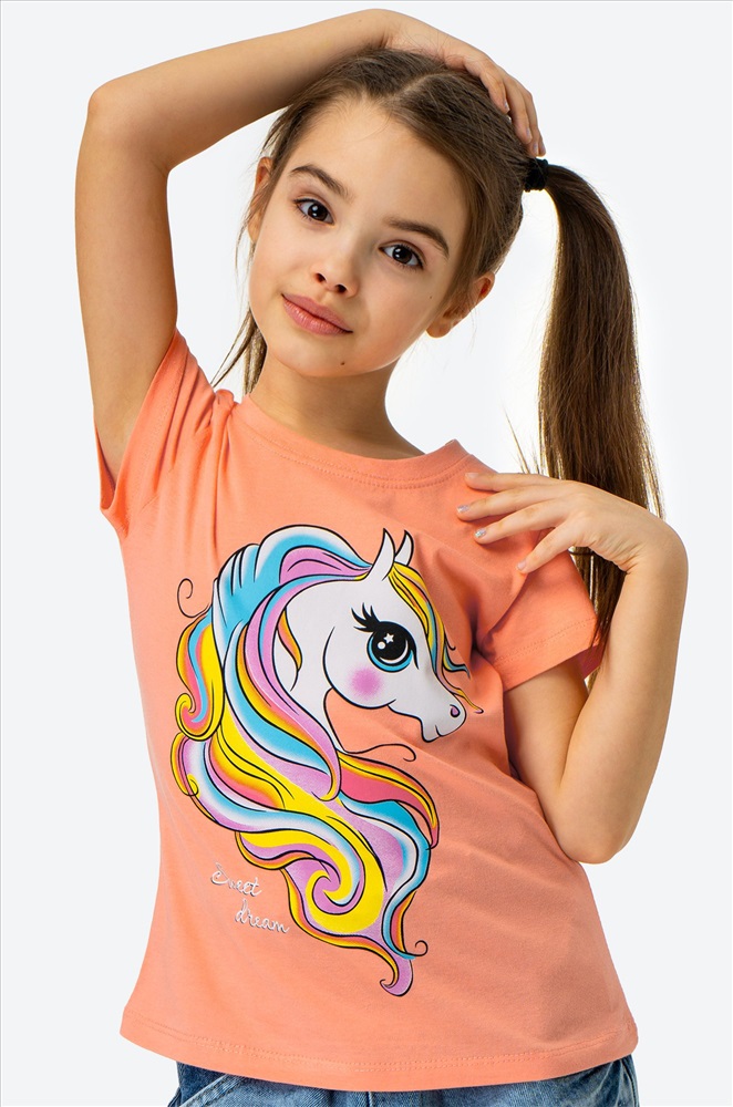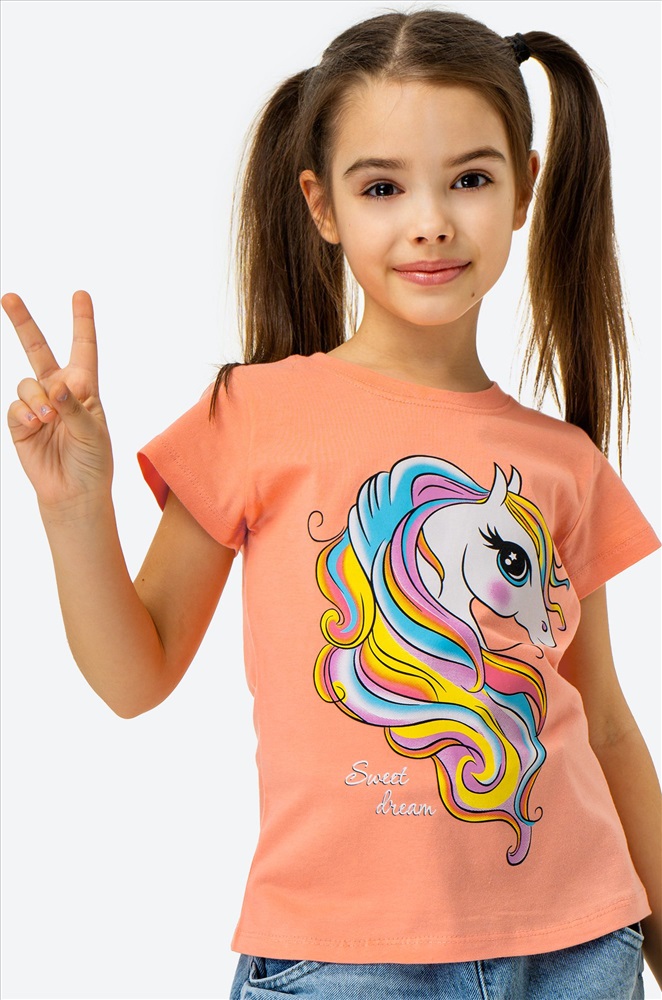 Бренд: Bonito Страна: Узбекистан Состав: 100% хлопок Материал: Кулирная гладь Плотность ткани: 140 г/ м2 Цвет: персиковый.единорог