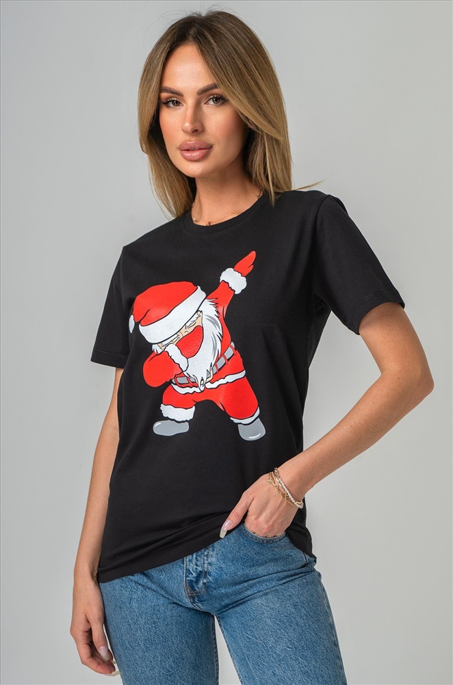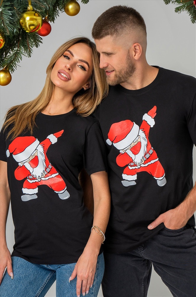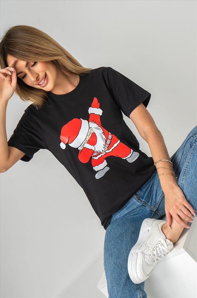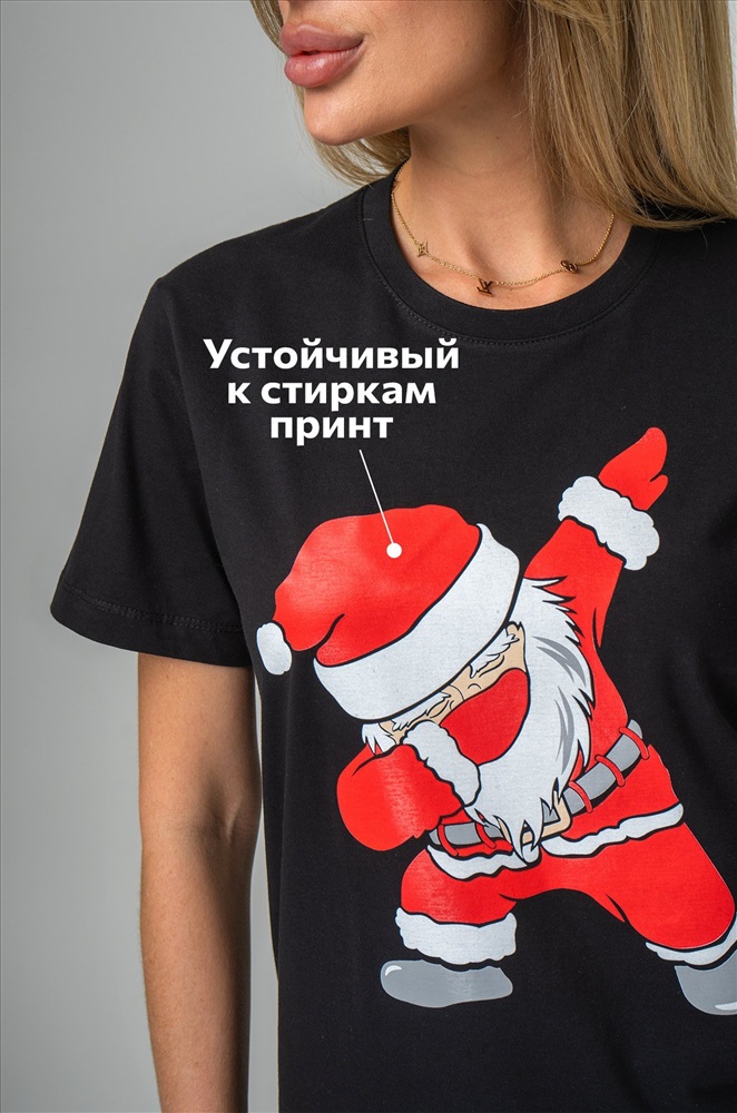 Черная футболка с принтом отлично подойдет для семейных встреч, дружеских вечеринок и просто уютных зимних дней.