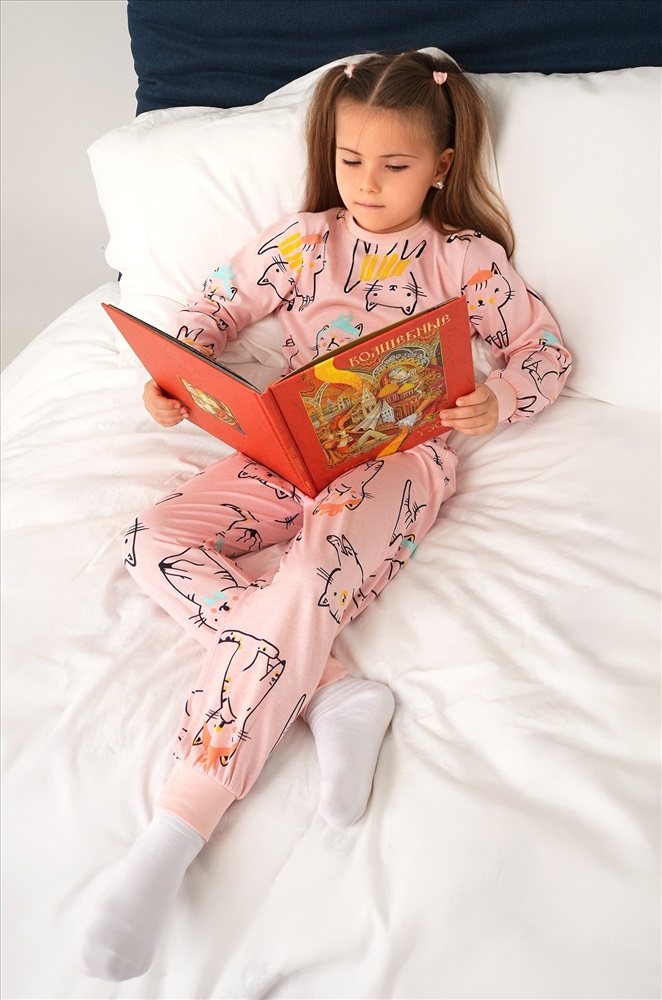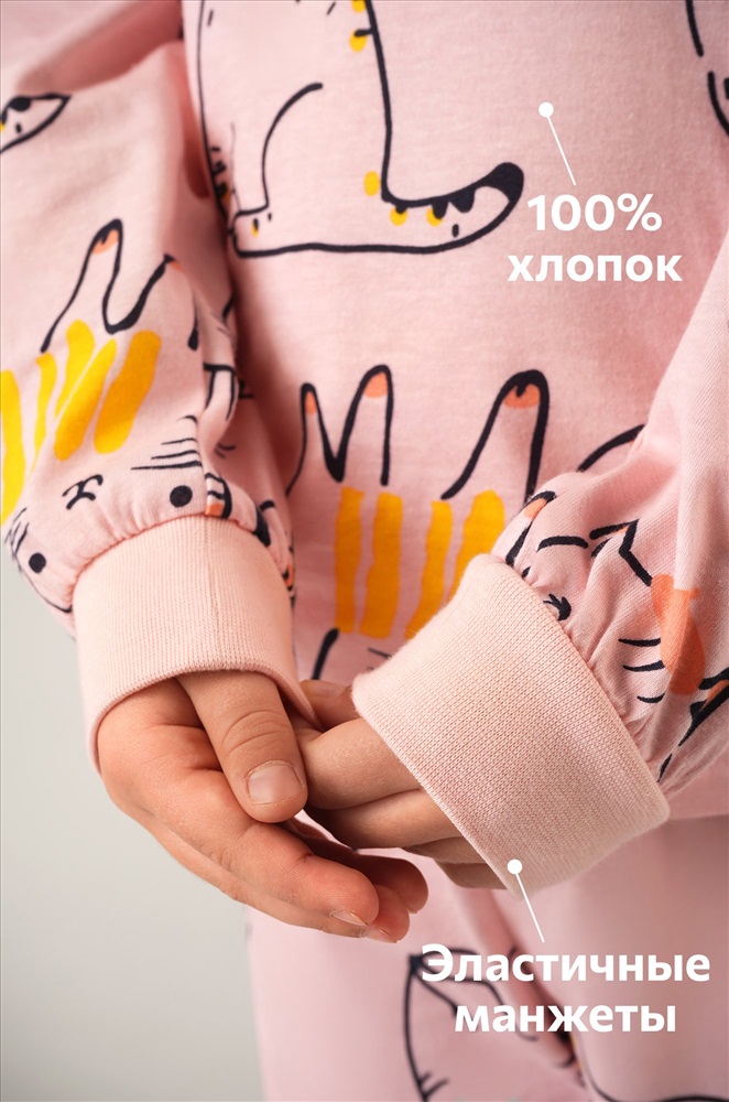 Мимими-эффект гарантирован! Розовая пижама с принтом Котики для девочки поднимает настроение с первого взгляда и создаёт уют с первой минуты. Детская пижамка — идеальный вариант на каждый день.