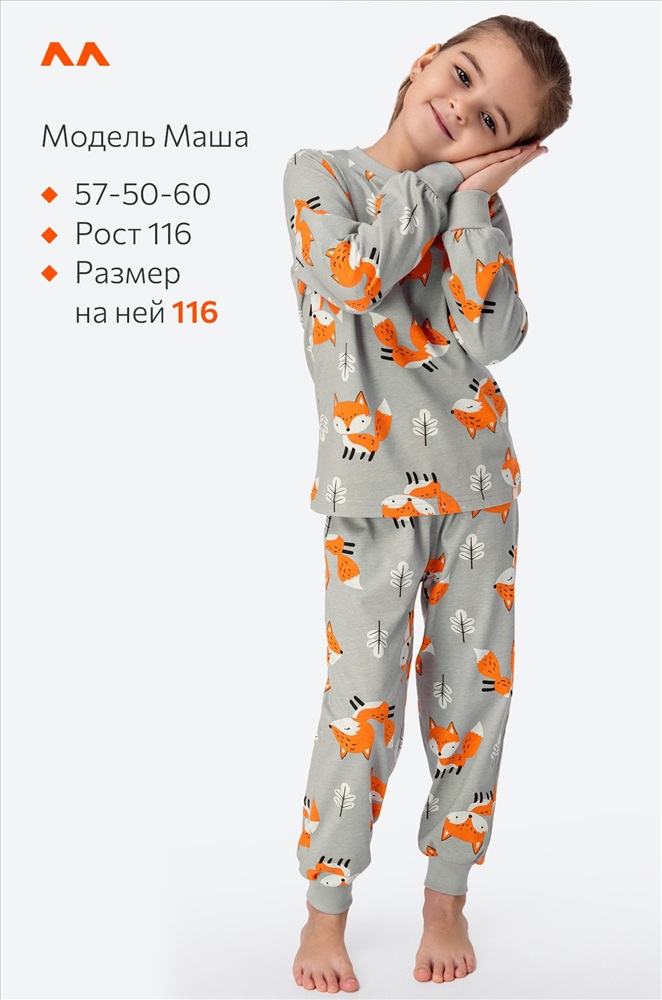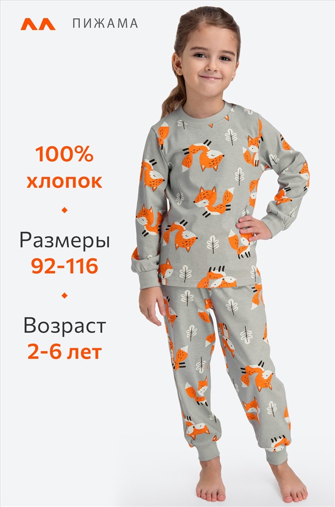 Мимими-эффект гарантирован! Светло-серая пижама с ярким принтом Лисички для девочки поднимает настроение с первого взгляда и создаёт уют с первой минуты. Детская пижамка — идеальный вариант на каждый день.
