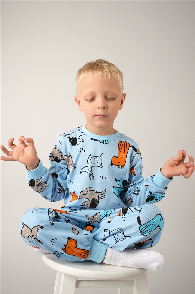 Преимущества: – натуральный 100% хлопок; – мягкий и дышащий трикотаж; – удобная посадка с брюками на резинке; – эластичные манжеты на штанах и рукавах; – милый принт. Джемпер прямого кроя и брюки с манжетами делают хлопковую пижамку практичной и удобной. Детская пижама с принтом подойдёт для сна и домашнего отдыха, создавая комфорт и радость для ребенка. Модель Дима, рост 113 см, параметры 57-52-60 см. На нем размер 116.
