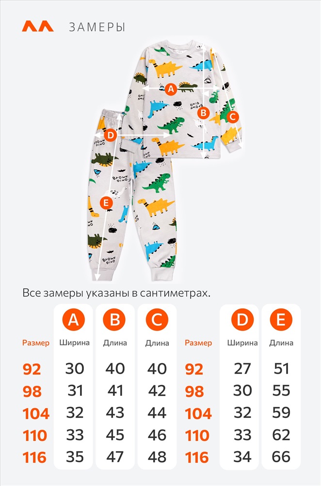 брюки: длина внеш. шва:51 см; длина внут. шва:30 см; ширина по бедрам:27 см. Размер 98: джемпер: длина:41 см; ширина:31 см; длина рукава внешняя:42 см; длина рукава внутренняя:29 см. брюки: длина внеш. шва:55 см; длина внут. шва:34 см; ширина по бедрам:30 см. Размер 104: джемпер: длина:43 см; ширина:32 см; длина рукава внешняя:44 см; длина рукава внутренняя:30 см. брюки: длина внеш. шва:59 см; длина внут. шва:37 см; ширина по бедрам:32 см. Размер 110: джемпер: длина:45 см; ширина:33 см; длина рукава внешняя:46 см; длина рукава внутренняя:32 см. брюки: длина внеш. шва:62 см; длина внут. шва:40 см; ширина по бедрам:33 см. Размер 116: джемпер: длина:47 см; ширина:35 см; длина рукава внешняя:48 см; длина рукава внутренняя:34 см. брюки: длина внеш. шва:66 см; длина внут. шва:44 см; ширина по бедрам:34 см. *замеры выборочные, могут незначительно отличаться. Комментарии к товару