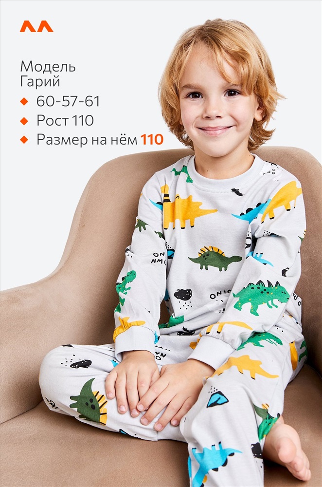 Преимущества: – натуральный 100% хлопок; – мягкий и дышащий трикотаж; – удобная посадка с брюками на резинке; – эластичные манжеты на штанах и рукавах; – милый принт. Джемпер прямого кроя и брюки с манжетами делают хлопковую пижамку практичной и удобной. Детская пижама с принтом подойдёт для сна и домашнего отдыха, создавая комфорт и радость для ребенка. Модель Гарий, рост 110 см, параметры 60-57-61 см. На нем размер 110.