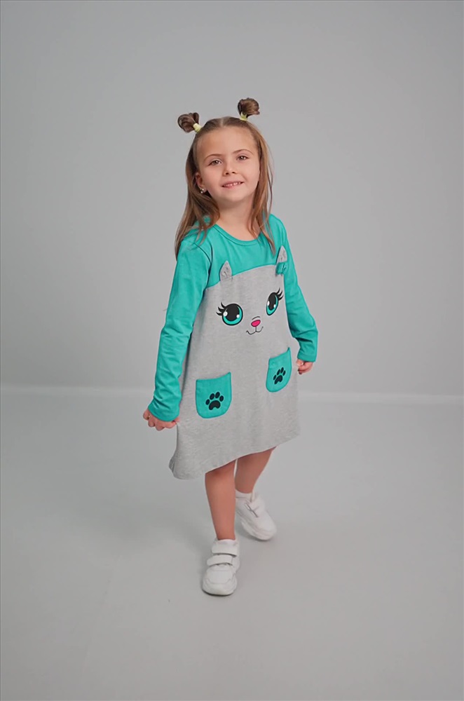 Очаровательное платьице, которое невозможно не полюбить с первого взгляда! Забавная Кошечка с ушками и бантиком вызывает улыбку, а мягкий хлопковый трикотаж делает его удобным для активных девчонок. Изумрудное детское платье создано для радости и комфорта каждый день.