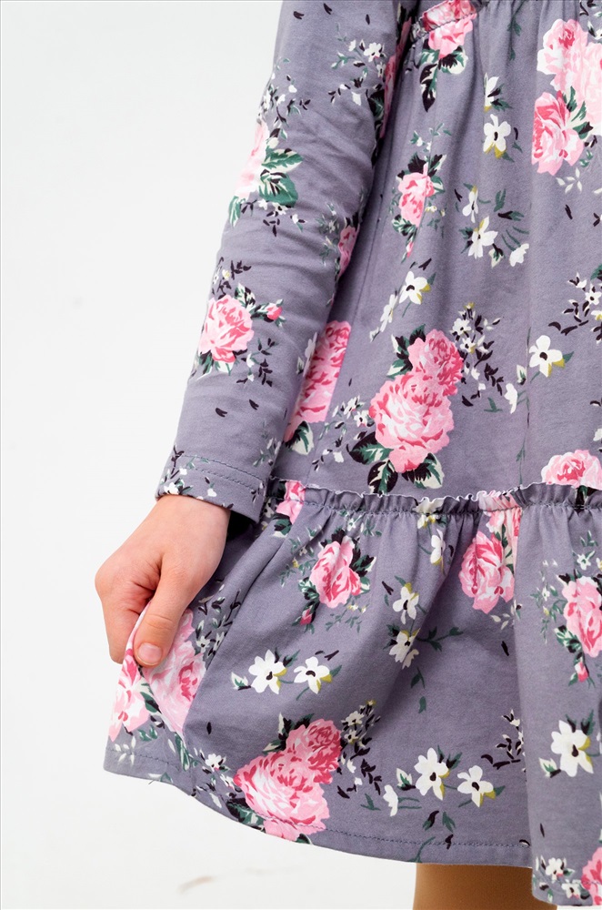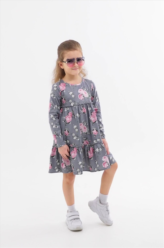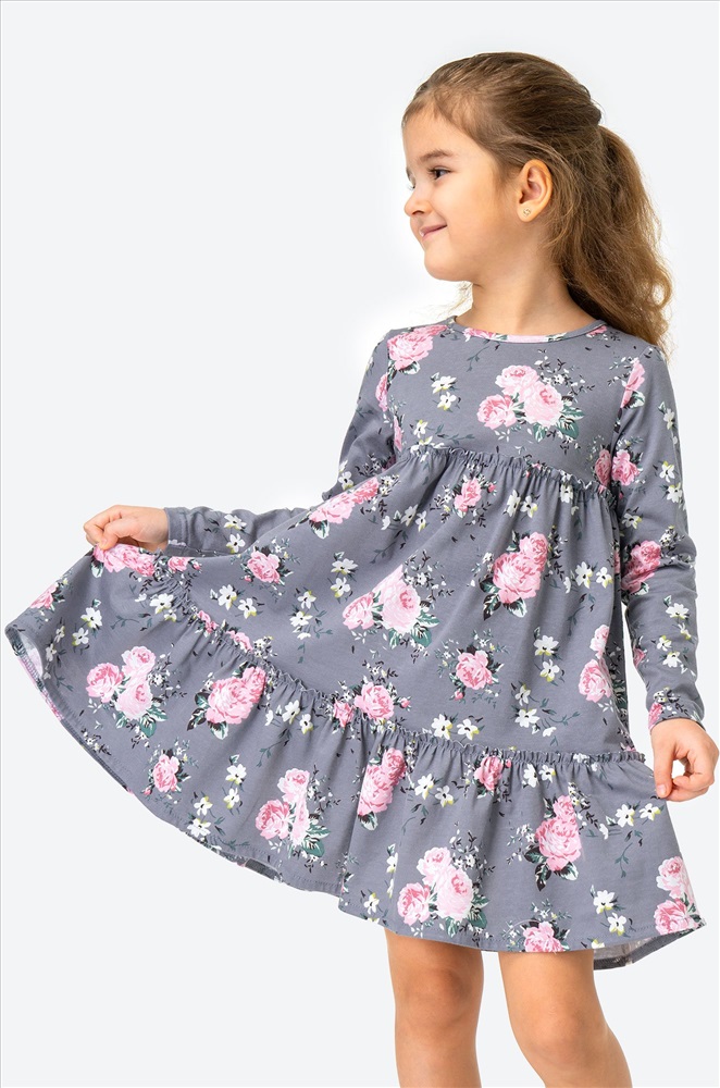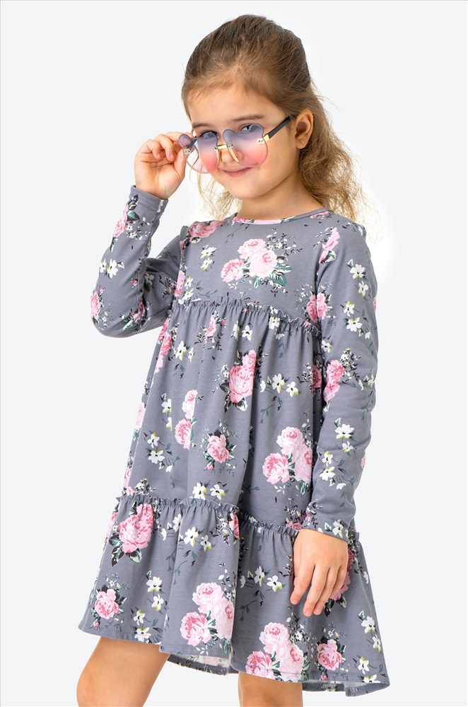Воздушное платье для настоящих принцесс! Детское платье для девочки выполнено из натурального 100% хлопка. Свободный крой, длинный рукав, удобная застежка на пуговицы – каждая деталь создана для комфорта ребенка. Благодаря милому цветочному принту и воздушным сборкам на юбке платьице для детей поможет создать кокетливый образ.