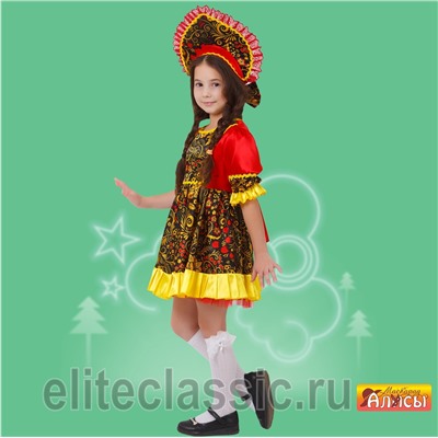 Костюм в русско-народном стиле "Хохлома" состоит из изысканного платья и богатого кокошника. Прекрасно подойдёт для масленичных гуляний, сценических и театральных постановок, Новогодних и детских тематических утренников, карнавальных вечеров .
