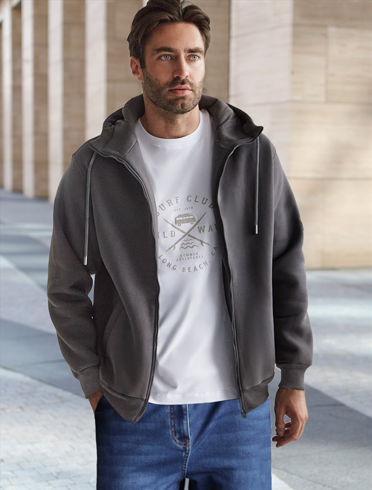 Плотность: 320 Г/м2 Худи на молнии выполнено из премиального эластичного футера трехнитки с теплым начесом. Модель с капюшоном и воротом стойка дополнена боковыми карманами и нашивкой с логотипом бренда из эко-кожи. Ранней осенью или поздней весной можно носить в качестве верхней одежды. Высококачественная фурнитура цвета темное серебро. Изделие сочетается в костюме с брюками U44.006