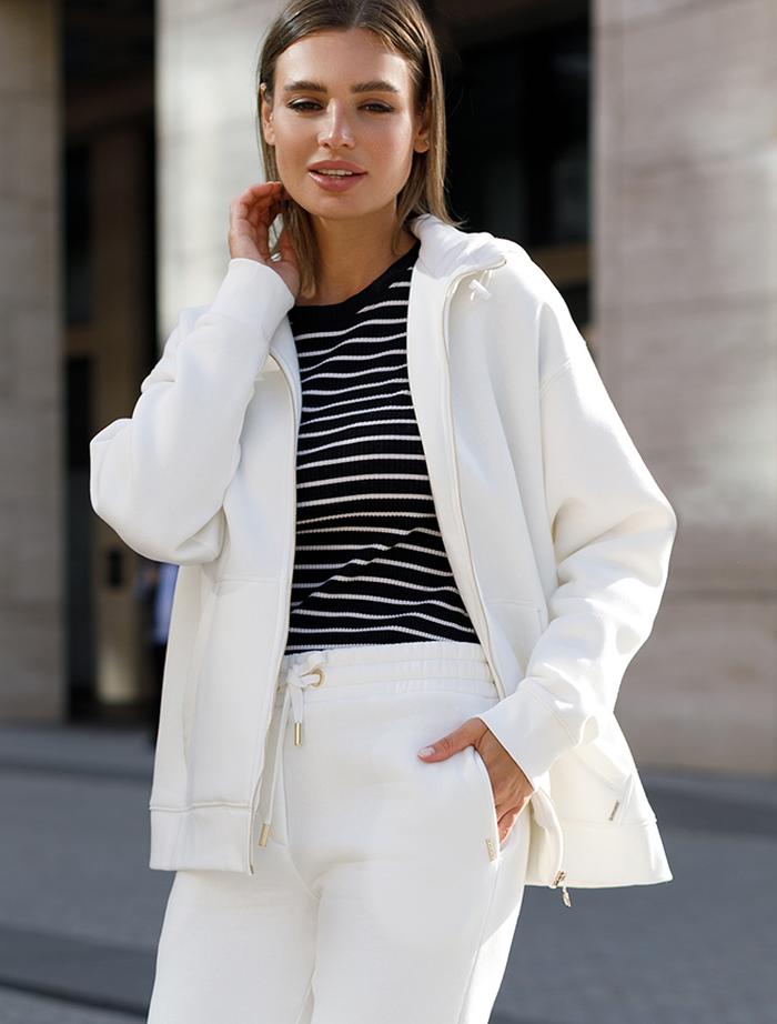 Худи на молнии выполнено из премиального футера трехнитки с теплым начесом. Модель дополнена боковыми карманами и золотистой фурнитурой, что поддерживает актуальный стиль спорт-шик. Свободный крой подходит для любой фигуры. Ранней осенью или поздней весной можно носить в качестве верхней одежды.