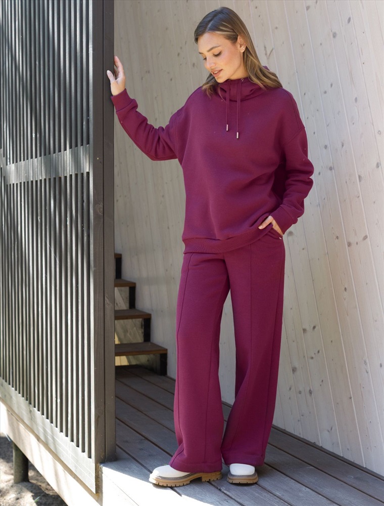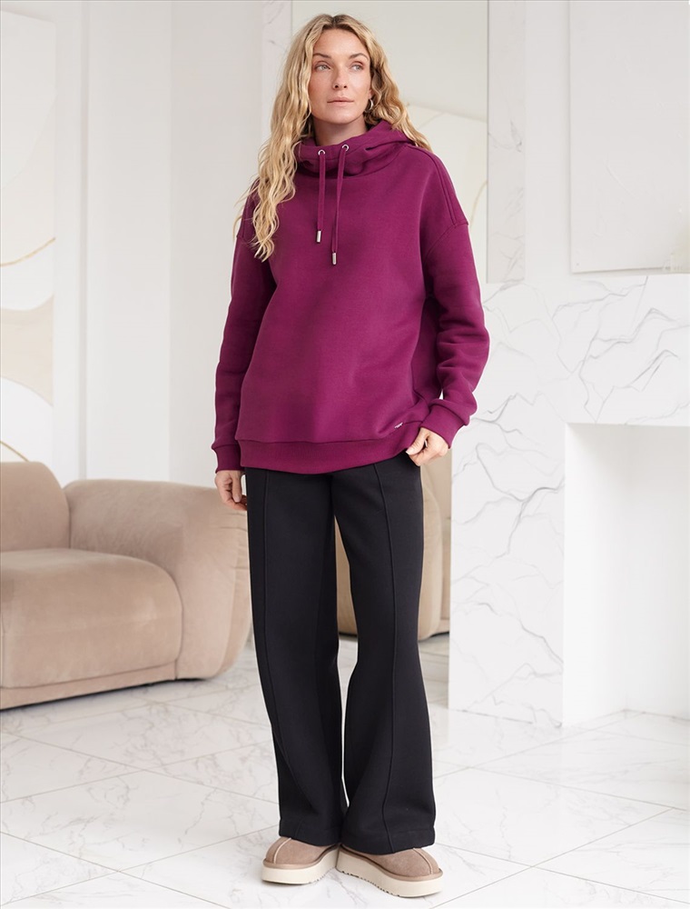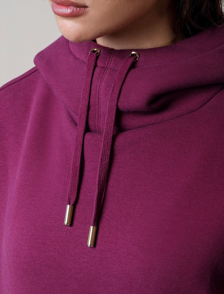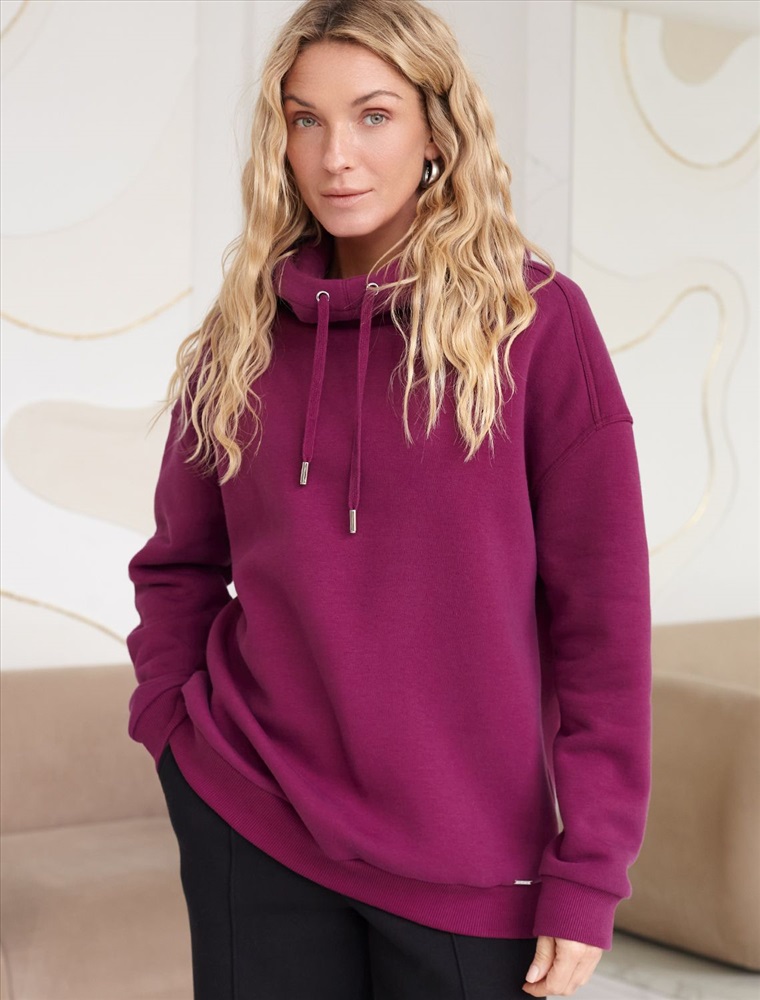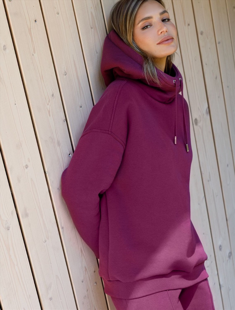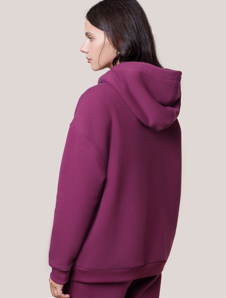 Уютное худи пурпурного цвета с цельнокроенным капюшоном и спущенной линией плеча создано для комфорта в холодную погоду. Модель выполнена из премиального футера трехнитки с мягким начесом, что обеспечивает дополнительное тепло и приятные ощущения при носке. Глубокий капюшон дополнен шнуром для регулировки объема, что обеспечивает отличную защиту от ветра и холода, а серебристая фурнитура добавляет стильный акцент к современному худи. Эластичные манжеты на рукавах и по низу обеспечивают дополнительную защиту от продувания, способствуя сохранению тепла внутри. Натуральный хлопок гарантирует дышащий эффект, позволяя сохранять оптимальный микроклимат тела даже при длительном ношении. Благодаря эластану в составе повседневное худи подходит для активного отдыха, вы будете чувствовать себя свободно в любой ситуации.