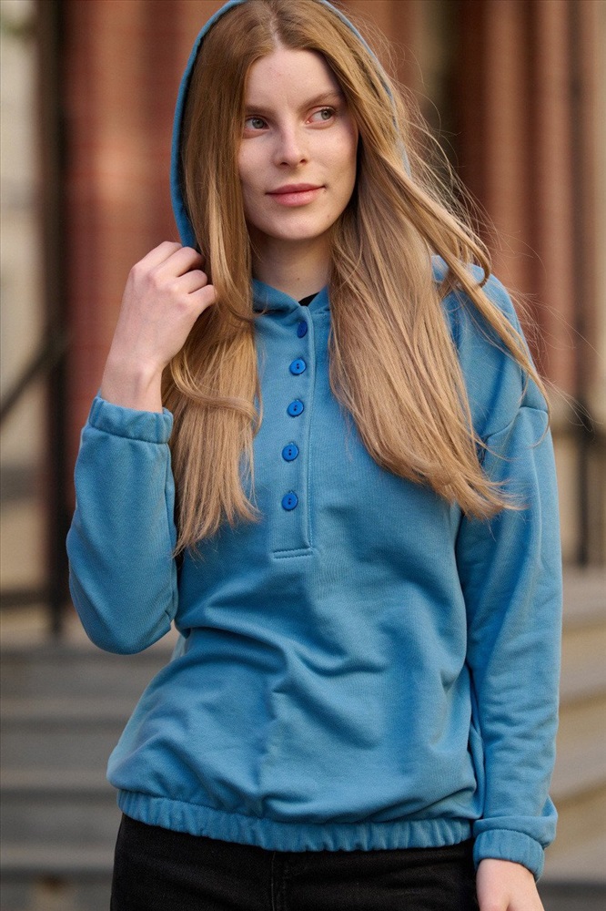 Состав: 80-хб 20-пэ Рост модели на фото, см: 174 Застежка: пуговицы Силуэт: свободный Конструктивные элементы: капюшон, резинка по низу изделия и рукавов Тип рукава: спущенное плечо Артикул: 3520-07