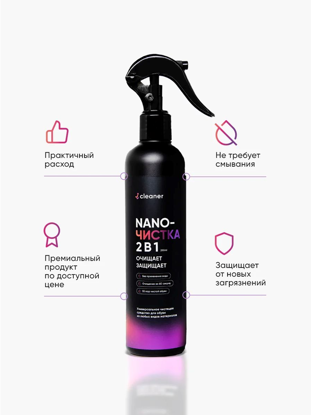 Объем, л: 0,25 Вес: 0 Nano-Чистка от icleaner - это заменитель скучной, порой долгой и сложной протирки обуви от повседневных загрязнений. Теперь не нужно мыть обувь под краном, пачкать раковину и покупать множество средств для очистки. Моментально и деликатно удаляет загрязнения с любого материала обуви, защищая ее от повторных загрязнения. Преимущества: 1) Подходит для всех материалов обуви 2) Перед применением не требует предварительной обработки и очистки другими средствами 3) Используется без применения воды 4) Моментально высыхает 5) На очистку 1 пары максимум 1 минута 6) Мобильность. Можно использовать в любом удобном месте. Нет привязки к привычным местам очистки (например, раковина, ванна, прихожая) 7) Защита. После очистки снижает степень прилепания новых загрязнений к обуви 8) Экономичность. 1 флакона 250ml хватит на 55 раз. Для чего использовать: Применять для удаления: пыли, грязи, соли, реагентов, прочих загрязнений, не требующих глубокой химчистки. Объекты обработки: Обувь из кожи, замши, кожзама, велюра, нубука, текстиля и резины и других материалов, а так же чистки любых изделий из текстиля. Инструкция: 1) Перед применением ВСТРЯХНИТЕ ФЛАКОН; 2) РАСПЫЛИТЕ средство на обувь с расстояния примерно 15-20 см (от 3х до 10ти доз на один ботинок/туфлю в зависимости от загрязнения), 3) Насухо ПРОТРИТЕ СУХОЙ микрофиброй, 4) При необходимости повторите. Состав: полимерная композиция, изопропиловый спирт, вода. Комментарии к товару
