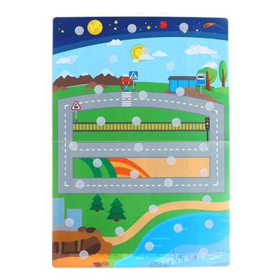 Рассмотри изображение на плакате, затем - липучки. Прикрепляй каждую деталь на нужное место. Во время игры запоминай название каждого вида транспорта.