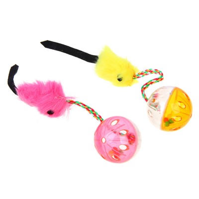 Игрушка для кошек в виде шарика с меховым хвостом – яркая, красочная и увлекательная игрушка, которая подойдет как для взрослых кошек, так и для котят всех пород. В наборе 2 игрушки. Если у вас несколько питомцев, этот набор станет отличным выбором для совместных игр. Мячик выполнен из пластика и оснащен меховым хвостом, который кошки с удовольствием будут катать по полу. Внутри игрушки находятся мелкие шарики, создающие дополнительные звуковые эффекты, что делает игру еще более захватывающей. Идеальны для активных игр, стимулируя физическую активность и развивая охотничьи инстинкты вашего питомца.