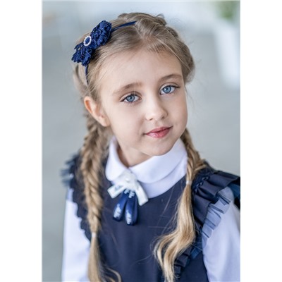 Стильный и удобный ободок, декорированный бантом из гипюровой ленты, серединка со стразами.