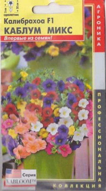Калибрахоа серии Kabloom™ это первая, из представленных на рынке, калибрахоа выращиваемая из семян. Это дает производителям посадочного материала невиданную ранее свободу в планировании производства этой востребованной культуры вне привязки к срокам поставки черенков от производителей вегетативного материала, погодным условиям и т.д. Растение формирует кустик высотой 20-30см и 25-36см в диаметре, в период цветения весь покрытый массой элегантных цветков. Калибрахоа является отличным выбором при создании композиций в подвесных кашпо, балконных ящиках и небольших напольных вазонах