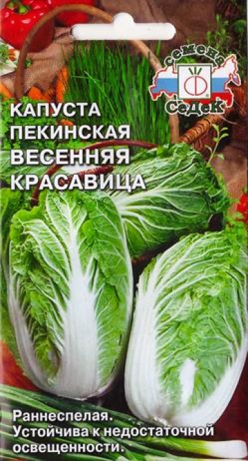 Раннеспелый (55-65 дней) сорт для ранневесеннего и осеннего выращивания в открытом и защищённом грунте. Розетка листьев приподнятая. Лист крупный, светло-зелёный, пузырчатый, со слабым опушением Жилка листа вогнутая, узкая. Кочан овальный, закрытый, среднеплотный, массой 2 кг, на разрезе белый, сочного вкуса. Урожайность 6,8 кг/м2. Ценность сорта: высокая урожайность и товарность урожая, выравненность кочанов, выносливость к недостаточной освещенности, устойчивость к стеблеванию. Рекомендуется для употребления в свежем виде, домашней кулинарии, засола и краткосрочного хранения. Богата витаминами, каротином, белками, углеводами. Фасовка 0,3г Комментарии к товару