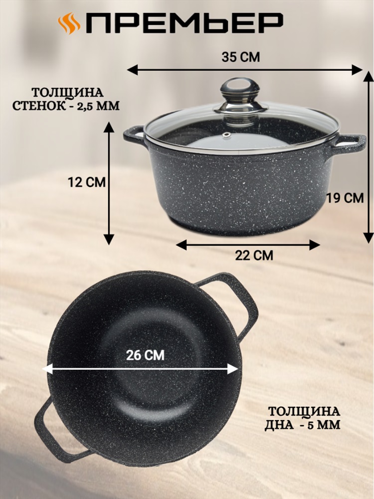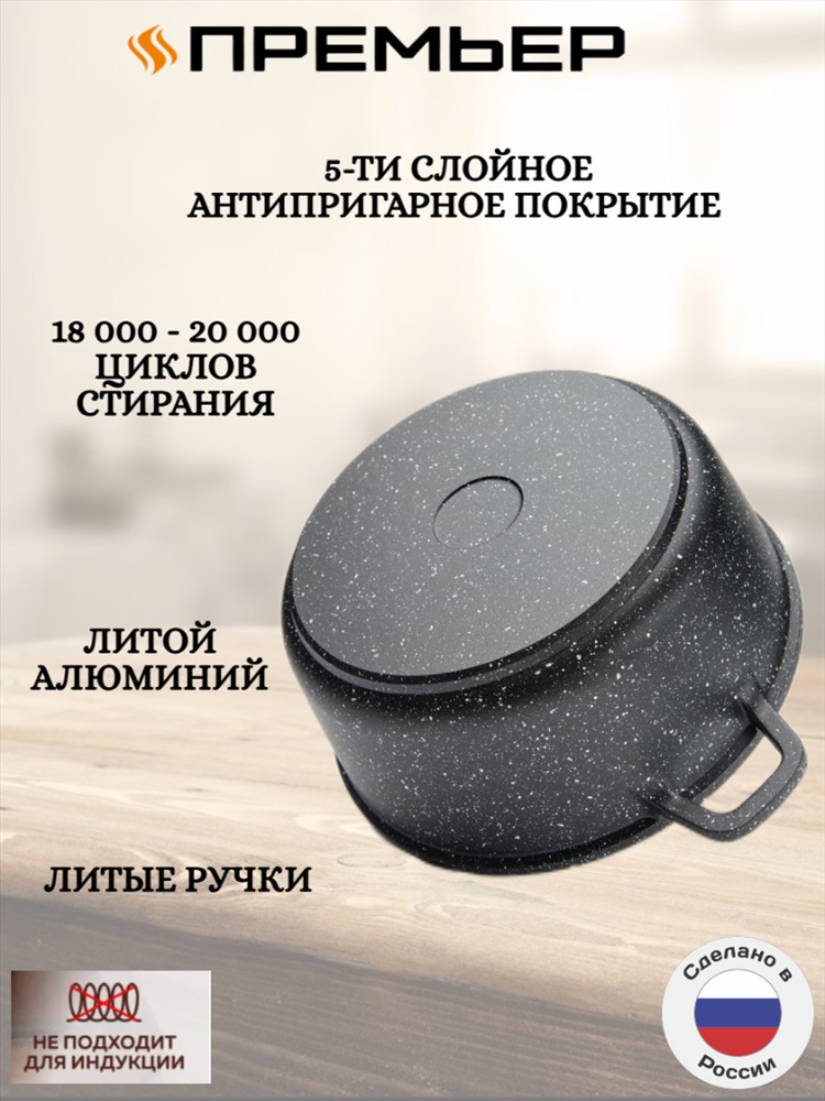 Кастрюля 5,7 л из литого алюминия с литыми ручками.