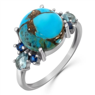 Вставка: Миксы Дизайн: Круг, Многокаменка Производство: Индия Покрытие: Родирование Ячейка: 5.A.10.01 Размер колец: 17 Количество: 1 Кольцо, арт.653022 Серебро Серебро 925, р. 18.5, 2,97 гр., бирюза пресс. , лондон топаз кварц , наносапфир Комментарии к товару