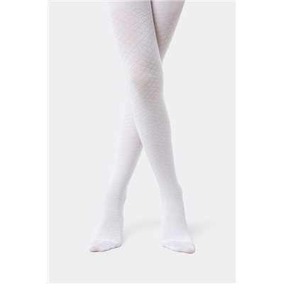 Рис.2392 Колготки гладкие с рисунком выполненым перекидным переплетением, в виде диоганальной сетки