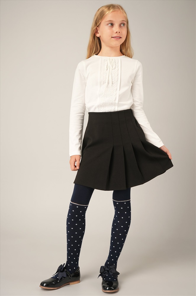 — школьные колготки прекрасно сочетаются с классическим низом;
