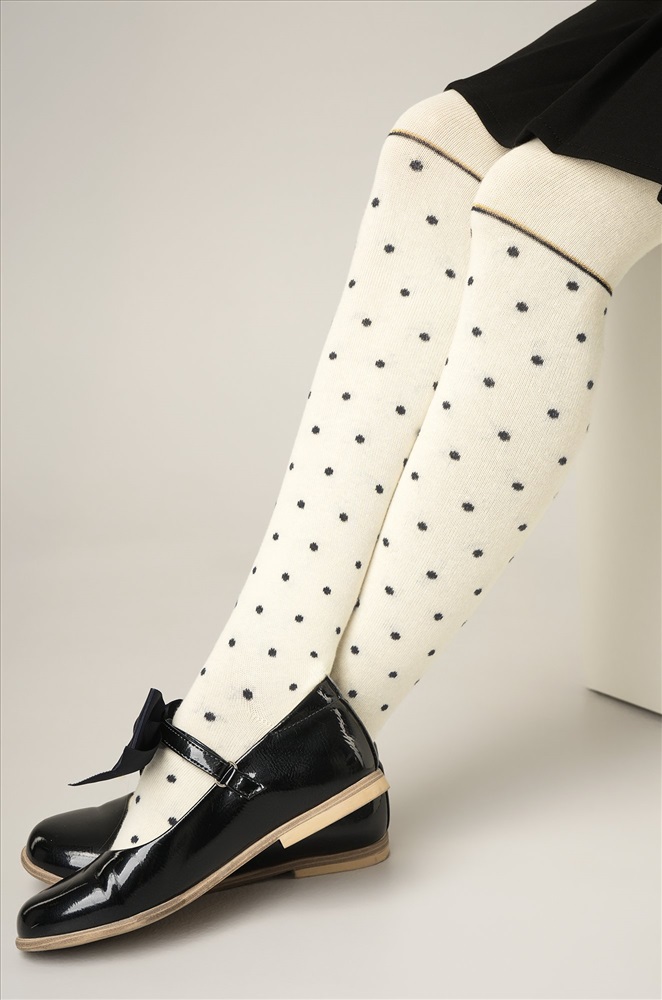 Детские колготки в горошек кремового цвета добавят образу нежности. Плотный трикотаж и эластичный крой дарят комфорт в любое время года.