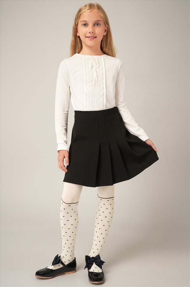— школьные колготки прекрасно сочетаются с классическим низом;