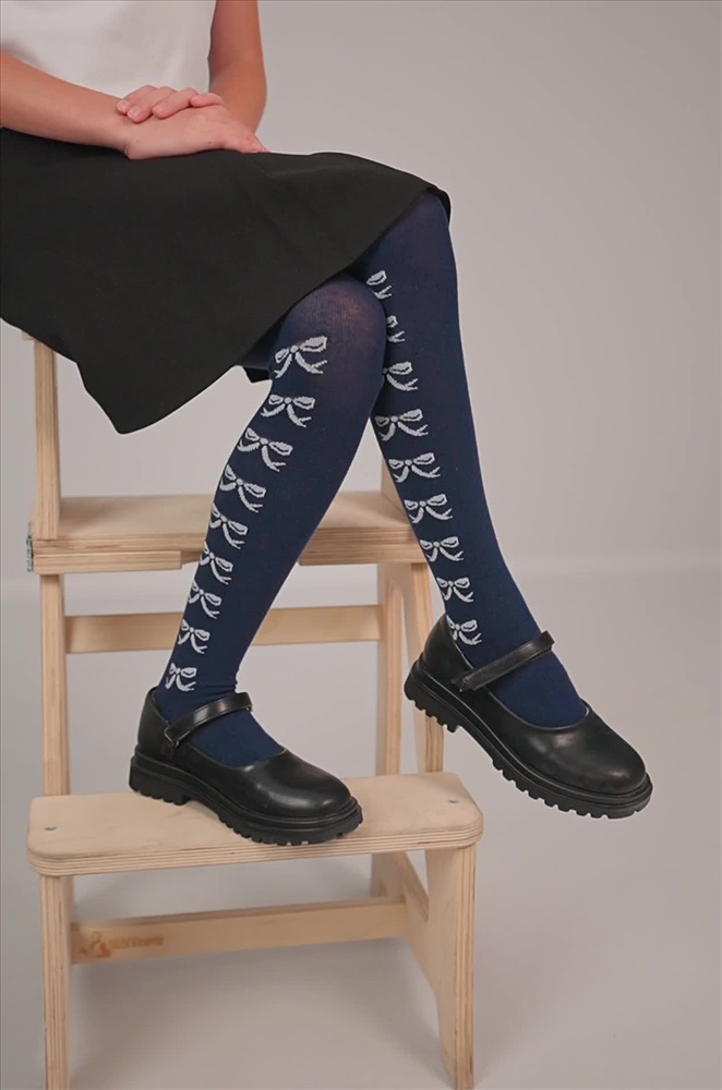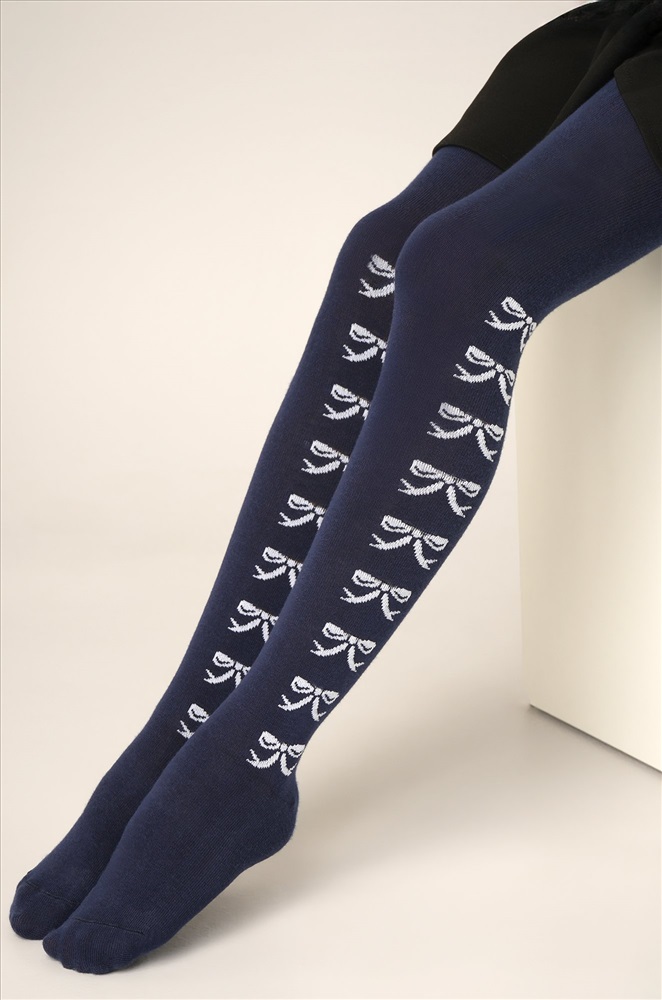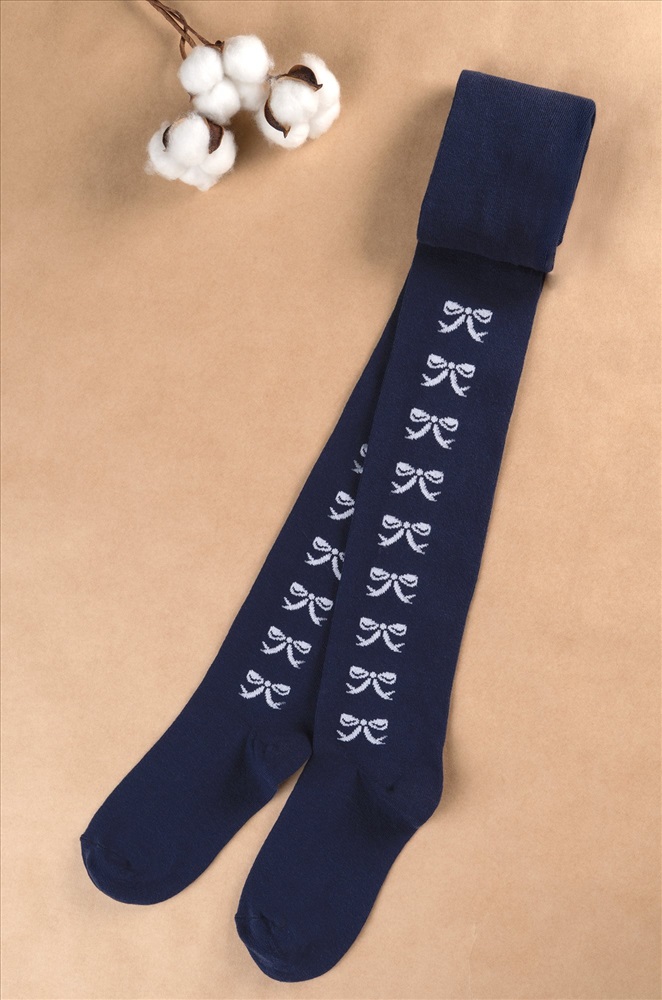 Детские синие колготки с бантиками добавят образу нежности. Плотный трикотаж и эластичный крой дарят комфорт в любое время года.