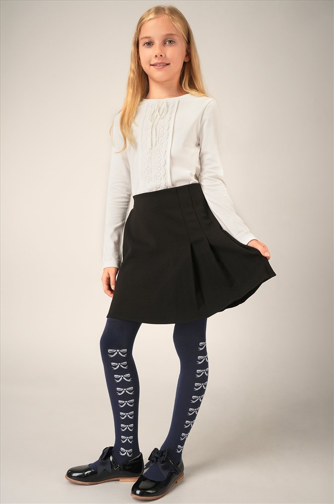 — школьные колготки прекрасно сочетаются с классическим низом;