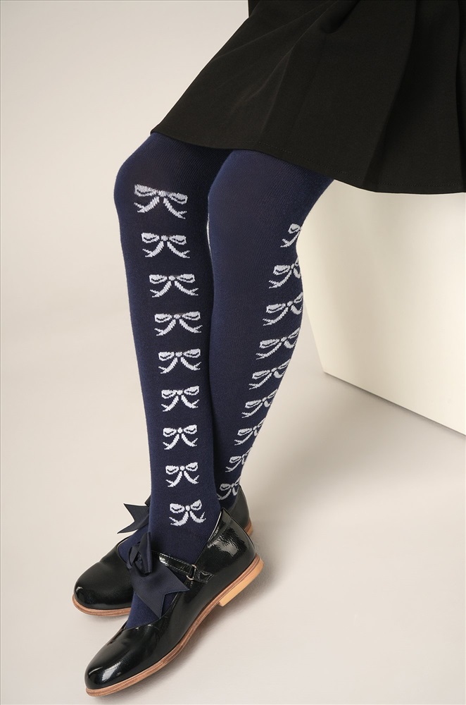— трикотажные колготки дополнены нарядным рисунком бантики;