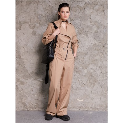 Коллекция: TOUCH GRASS Сезон: Весна Ткань: Текстиль Подклад: Нет Длина рукава: Длинный Воротник: Стойка Линия плеча: На естественном месте Карманы: Прорезные на молнии спереди, накладные сзади Пояс: Из основной ткани Застежка: Молния Длина изделия в росте: 164 от талии- 42р - 107см, 50р - 108см. Ширина брюк по низу: 42р - 26,5см, 50р - 28,5см. Состав ткани: Хлопок 55% Нейлон 40% Спанд 5% Рост модели на фото: 174 Размер модели на фото: 44 Комбинезон на молнии. Длина рукава регулируется хлястиком, который пристёгивается на кнопку. По плечевым швам погоны, фиксированные кнопкой. Спереди наклонный подрез, отложные лацканы и смещённая застёжка на металлическую молнию. Прорезные карманы застёгиваются на молнию. Спинка с кокетками, средним швом и накладными карманами. Талия подчёркнута ремнём из основной ткани, вставленным в шлёвки. Комбинезон декорирован контрастными отделочными строчками. Комментарии к товару