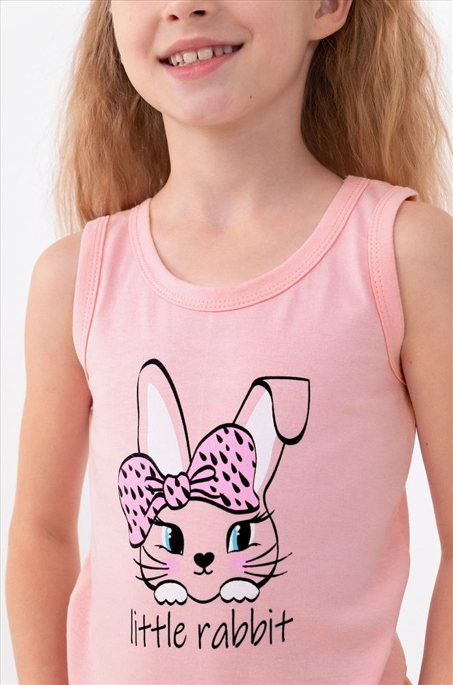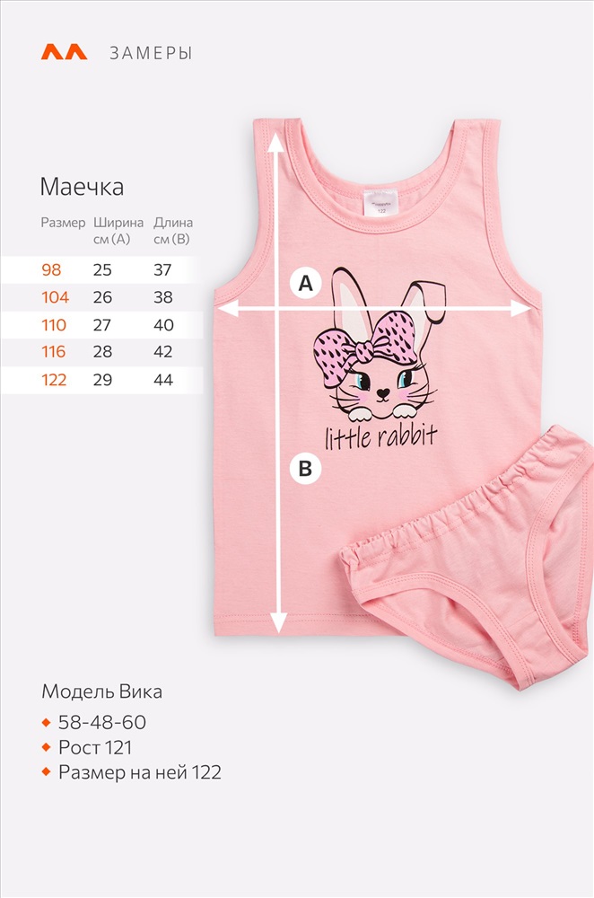 Мягкость, легкость и комфорт! Детский набор из майки и трусов слипов для девочки выполнен из натурального 100% хлопка. Розовый комплект для детей станет любимым в гардеробе благодаря милому принту Зайчик.