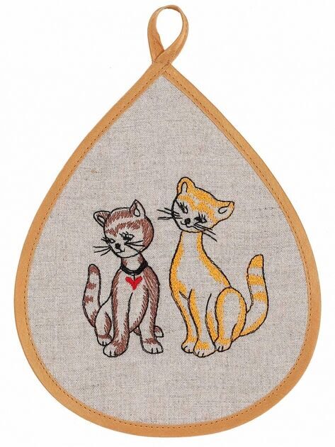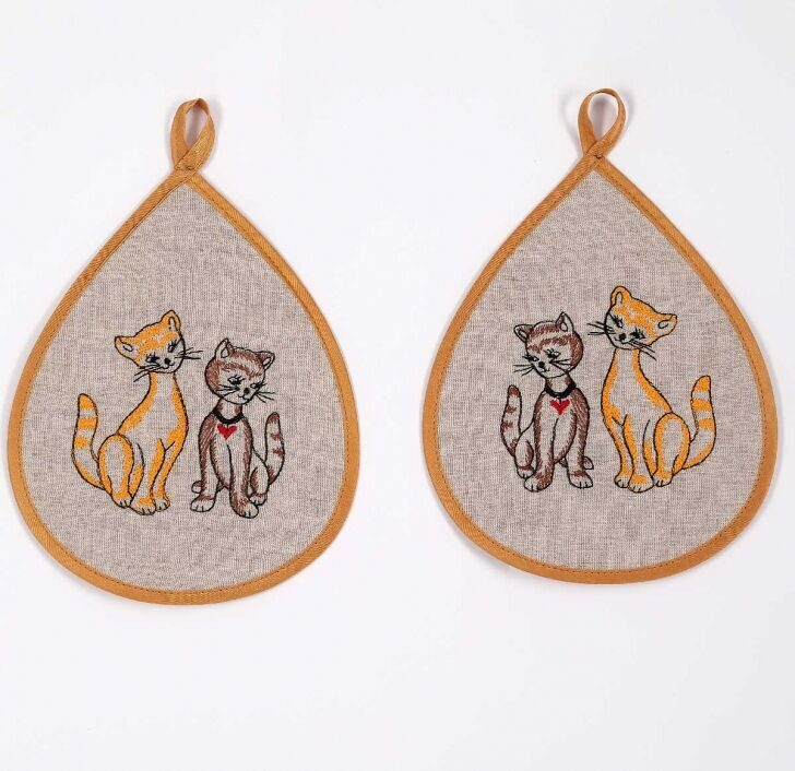 Комплект прихваток с вышивкой "Кошки" лен 100%