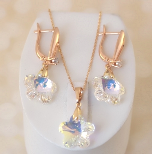 Материал: бижутерный сплав. Покрытие: золото 18К. Вставка: австрийские кристаллы. Размер серьги: 3,5 см. Длина цепочки: 45 см. Размер камня: серьги - 1,4 см. кулон - 1,4 см. Цвет камня: хамелеон. Комментарии к товару