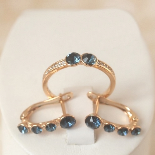 Материал: бижутерный сплав. Покрытие: золото 18К. Вставка: австрийские кристаллы Размер серьги: 1,6 см. Цвет камня: синий. Комментарии к товару