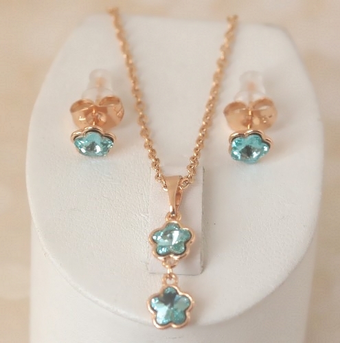 Материал: бижутерный сплав. Покрытие: золото 18К. Вставка: австрийские кристаллы. Длина цепочки: 40-45 см. Размер камня: серьги-гвоздики - 0,7 см. кулон - 2,4 см. (с ушком) Цвет камня: голубой. Комментарии к товару