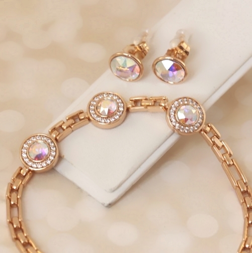 Материал: бижутерный сплав. Покрытие: золото 18К. Вставка: австрийские кристаллы. Длина браслета: 17-19 см. ( с увеличителем) Размер камня: серьги-гвоздики -0,9 см (с ободком) Цвет камня: хамелеон. Комментарии к товару