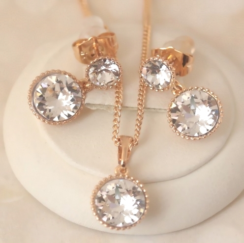 Материал: бижутерный сплав. Покрытие: золото 18К. Вставка: австрийские кристаллы. Размер серьги: 1,9 см. Размер камня: серьги -0,9 см. Кулон - 0,9 см. Цвет камня: прозрачный. Длина цепочки: 45 см. ВНИМАНИЕ: плетение цепочки может отличаться от фото! Комментарии к товару