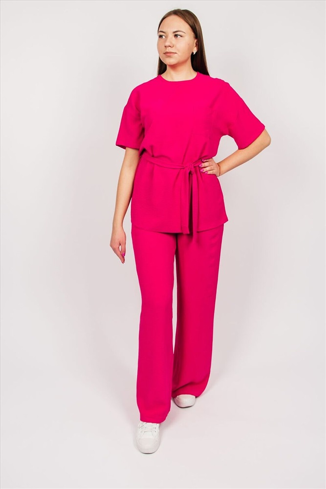 Производитель: НАТАЛИ ID товара: 982008 Состав: 92% Полиэстер, 8% Эластан Сезон: Весна/Лето Длина: Полная Фасон: Свободный Рукав: короткие Крой брючин: Прямой Декоративные элементы: Пояс Основная ткань: Полиэстер Стиль: повседневный Вид ткани: Сингапур Страна бренда: Россия Страна производства: Россия