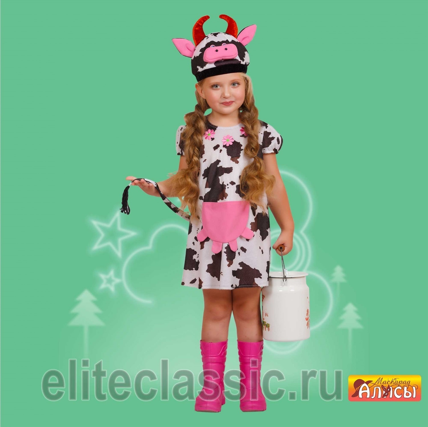 платье с карманом изображающая вымя, маска в виде забавной мордочки коровки.