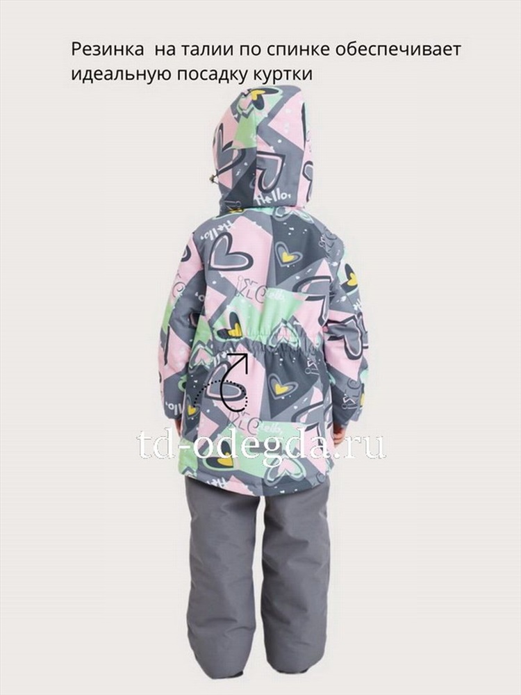 КОСТЮМ С ЗАПАСОМ +6! Демисезонный костюм для девочки изготовлен из усиленной мембранной ткани с показателями мембраны водостойкость: 3 000 мм, воздухопроницаемость 3 000 г/м2/сут. Весенний костюм с утеплителем 100 грамм. Удобная куртка на молнии с ветрозащитной планкой. На груди и спинке подкладка из трикотажа создает дополнительный слой утепления. Съемный и регулируемый по глубине капюшон прекрасно защитит вашего ребенка в ветреную погоду. Длина рукава регулируется отворотом или липой, что позволит носить мембранный костюм несколько сезонов. По низу куртки имеется утяжка для регулировки по ширине. Брюки на лямках с высокой грудкой  очень удобные и не сковывают движения. Длина брюк регулируется отворотом. Внутри брючин вшиты защитные манжеты на обувь. Светоотражающие элементы обеспечивают безопасность прогулок в темное время суток. Температурный режим 0...+15.