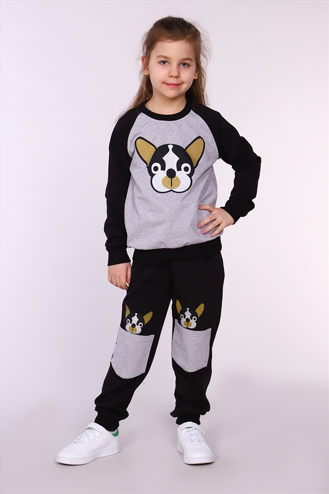 Состав материала: 74% хлопок, 20% п/э, 6% лайкра Цвет: Серый Бренд: Натали Код товара: НФ-00058630 Костюм из 2-х нитки пенье - мягкой и эластичной ткани, которая не будет сковывать движения. Рукава реглан, на кофте красивая печать. Брюки на манжетах, в области колена имеются накладные карманы, из которых виднеется печать в виде собачки. Свободный крой и оригинальный дизайн понравятся вашему ребенку Комментарии к товару