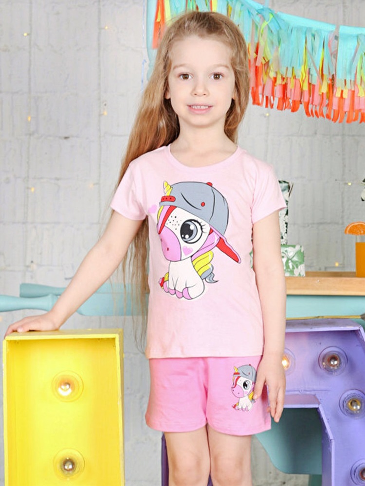 Страна: Узбекистан Материал: Кулирка Состав: Хлопок 100% Цвет: Розовый светлый Рисунок: Единорог Чудесный костюм для девочки, выполненный из 100% хлопка - кулирной глади. По вороту футболки имеется трикотажная манжета. Шорты на удобной мягкой резинке. Модель украшает прелестный принт на полочке и одной половинке шорт. Замеры модели: Размер 92: футболка - длина 36,5 см, ширина 27,5 см, шорты - длина по внешнему шву 24,5 см, длина по внутреннему шву 5,5 см; Размер 98: футболка - длина 38,5 см, ширина 30 см, шорты - длина 25/6 см; Размер 104: футболка - длина 41 см, ширина 30,5 см, шорты - длина 26,5/6,5 см; Размер 110: футболка - длина 43 см, ширина 31,5 см, шорты - длина 28/7 см. Комментарии к товару