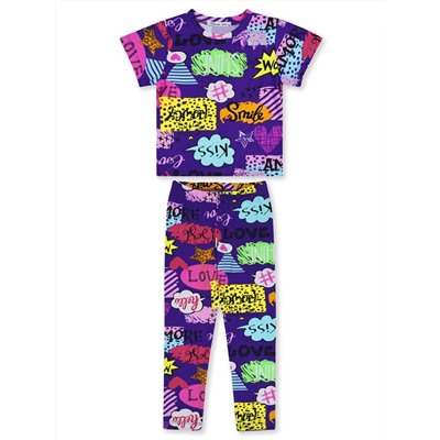 Классный костюм для девочки, состоящий из укороченной футболки и лосин. По вороту футболки - мягкая трикотажная манжета. Лосины на удобной эластичной резинке. Модель украшает яркий набивной рисунок по всему изделию. Костюм сшит из мягкого, приятного к телу материала - бамбука.