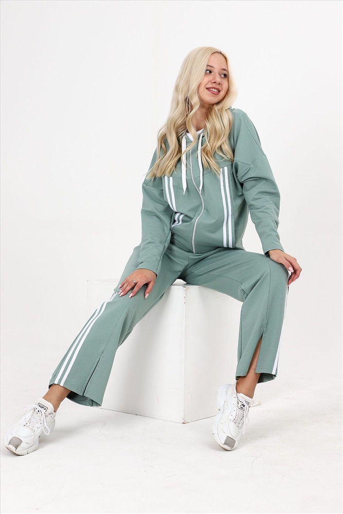 ID товара: 807279 Состав: Хлопок 72%, Полиэстер 20%, Лайкра 8% Сезон: Осень/Зима Длина: Полная Фасон: Прямой Рукав: Длинные Вид застежки: Молния Крой брючин: Широкий Тип карманов: В шве Декоративные элементы: Разрезы Основная ткань: Хлопок | Футер с лайкрой 2-х нитка Стиль: Спортивный Страна бренда: Россия Страна производства: Россия Костюм состоит из толстовки и брюк. Толстовка прямая, свободная, с капюшоном, на молнии. Полочка с кокетками и вертикальными рельефами. В рельефных швах обработаны карманы. Рукав длинный. Низ спинки обработан поясом. Брюки свободные, прямые, с боковыми карманами, на поясе. В нижней части передних половинок брюк обработаны разрезы. Комментарии к товару