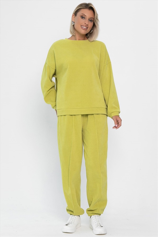 Костюм свободного кроя со спущенным рукавом на кофте и без лишних декоративных деталей — это базовый предмет гардероба для прохладного времени года. Брюки по талии на резинке и снизу тоже на резинке, оснащены карманами для хранения мелочей, отсрочка стрелок придает свою уникальность. Отлично подойдет тем, кто любит комфорт и свободу.