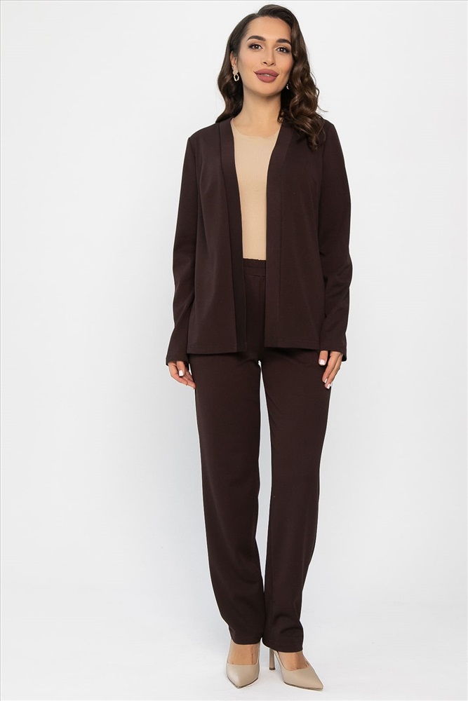 Женский брючный костюм шоколадного цвета — это идеальное сочетание стиля и удобства. Он состоит из классических прямых брюк и элегантного жакета. Строгий крой и благородный оттенок подходят как для офиса, так и для учебы. Это отличное решение для тех, кто стремится к практичности и стилю в одном!